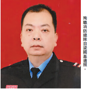 梁國基在1985年加入消防處,2000年3月晉升為隊目,曾駐守多間消防局;至2011年晉升為消防總隊目,駐守旺角消防局。同袍昵稱梁為「肥雞」,本來將於5年后退休。他與妻子育有一名17歲女兒,現就讀中三,一家三口同住消防宿舍。梁本駐守旺角消防局,但最近被派往石硤尾消防局「頂更」。