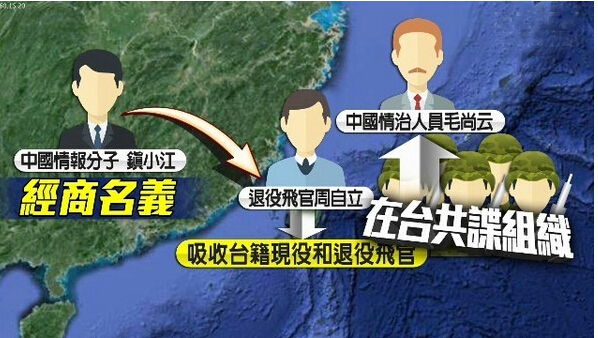 據臺灣《中國時報》21日報道,涉案的周自立曾是空軍飛行教官,駕駛AT—3教練機超過6000小時,退役后赴大陸時認識了任職于廈門市人民政府某辦公室的鎮小江;鎮小江介紹化名“毛尚云”的大陸情治人員及廈門市政府官員給周認識。報道稱,鎮小江疑為毛的友人,并受毛的指示吸收周自立為“共諜”,要求其返臺利用昔日官校的人脈,引見現役及退役飛行員建立網絡,搜集空軍官校文書和機密文件。