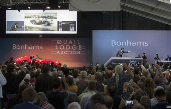 在今年8月於蒙特雷舉行的Quail Lodge拍賣會上,邦瀚斯創造了一項新的汽車拍賣紀錄,一輛法拉利250 GTO拍出了3,800多萬美元的天價