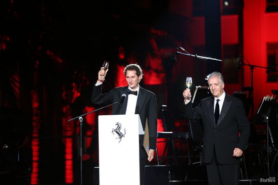 FCA董事長、阿涅利家族成員約翰•艾爾坎與皮耶羅•法拉利(圖右)共同慶祝法拉利進入北美市場60周年。這兩個家族將保留相當多的法拉利股份,很有可能會繼續保持控股地位。