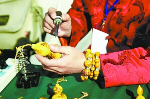 非遺展本是宣傳非遺文化的媒介,很多時卻成了生意人眼中招商拿項目的噱頭。對此,京派內畫家、中國工藝美術家學會會員王志江告訴北京商報記者,“在潘家園參展的這兩天總是有家長帶孩子來看展,看到展位中高至十幾萬元的內畫鼻煙壺作品的標價時,有些家長就在詢問是否可以讓孩子來和我學習。他們并不是為了傳承技藝,他們只是片面看到了成品的價格,卻沒看到鼻煙壺背后的文化內涵。所以非遺的宣傳和展覽決不能以價格為導向,不能讓非遺變了味道”。