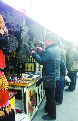 幾個月前,北京地壇公園舉辦的非遺博覽會雖說市民參與程度很高,但魚目混雜也是給人最深的感受,賣舊書的、賣音像制品的、賣零食的,還有賣扣子等小商品的,當然還少不了在廟會大集上的常客羊肉串,燒烤的烏煙瘴氣,伴隨著各種雜亂的吆喝。現場掛著剪紙的攤位上,只有地上擺著一摞剪紙窗花,而攤位上卻堆滿了各式手串、項鏈、鑰匙扣。本是傳播中國傳統文化的非遺展卻變成了人來人往的“雜貨大集”。用其他展位的招商來補貼免費的非遺展位也成為近幾年眾多非遺展的通病。看來“非遺”這個筐真是什么都能裝。