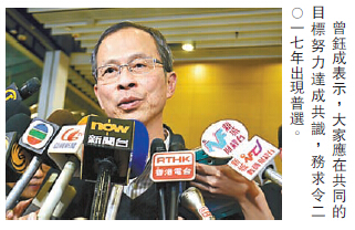 曾鈺成認為泛民與政府不存在所謂讓步的空間,指民意十分清晰,大家應在共同的目標努力達成共識,務求令2017年出現普選。他同時建議學聯的所有行動與訴求應以合法、負責任的形式進行。