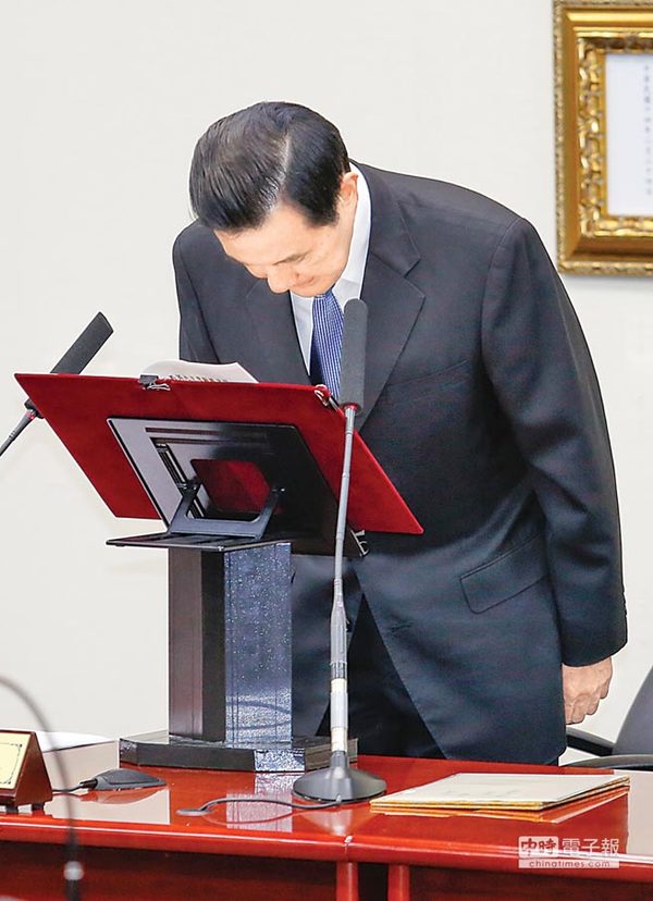 “九合一”敗選,讓馬英九請辭國民黨主席。圖片來源:臺灣《中時電子報》資料照片)