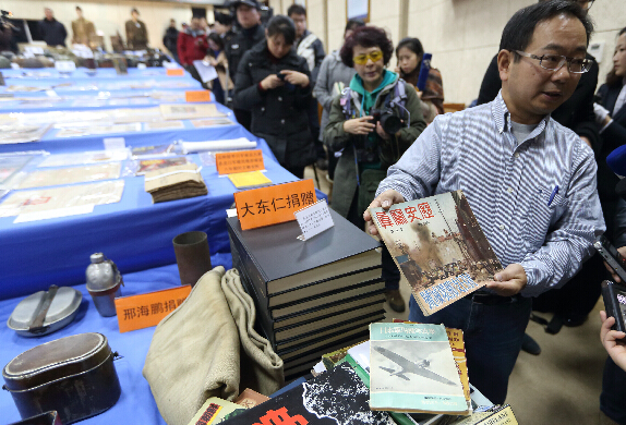 12月8日,在首個南京大屠殺死難者國家公祭日前夕,侵華日軍南京大屠殺遇難同胞紀念館舉行“史料新證一一2014年新征文物”新聞發布會,公布了7602件新征文物史料,它們來自中國、美國、日本、英國、德國等14個國家,包括侵華日軍軍用裝備、新聞照片、侵華日軍強征“慰安婦”使用的物品、法軍望遠鏡、援華美軍裝備、抗戰老兵實物等,內容涉及南京大屠殺、性暴行、毒氣戰等日本侵華罪行,以及世界反法西斯戰爭等主題。