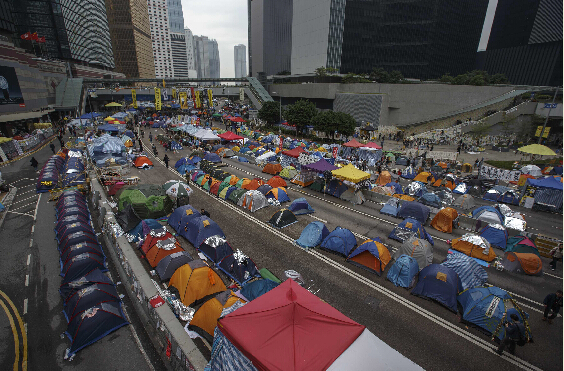 警方早上將在金鐘占領區清場。在添華道與夏愨道交界,多名泛民立法會議員及政黨人士留守,包括民主黨的劉慧卿、何俊仁;工黨的李卓人、公民黨的梁家杰、毛孟靜、社民連的梁國雄,及壹傳集團主席黎智英。