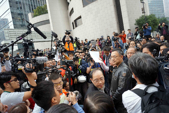 上午9时,香港法庭执达主任开始在被示威者非法霸占的金钟“占领区”宣读禁制令。