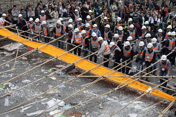 被占領75天的中環、金鐘一帶道路周四進行清場,代表禁制令申請人的律師和執達主任早上宣讀禁制令后,清場隨即展開。目前過程大致順利,而警方亦尚未介入。