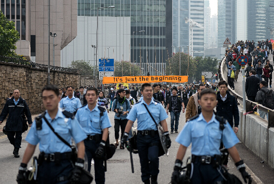 导语:違法“占領中環”進入第75天,11日上午9時,香港法庭執達主任開始在被示威者非法霸占的金鐘“占領區”宣讀禁制令,警方也將協助法庭執達主任執行禁制令,并行使其它法律賦予權力,清除中環、金鐘一帶的障礙物,開通被堵塞道路。隨後,警方也將在铜鑼灣一帶移除被非法霸占路段的障礙物,開通道路。警方依法對“占中”的全面清場正式展開。