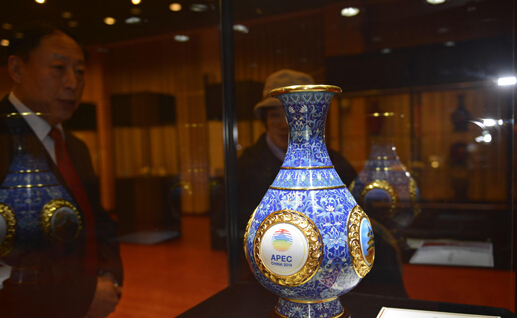 展出的APEC會議禮品《四海升平》景泰藍賞瓶
