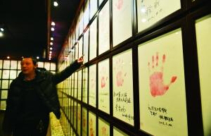 博物館展廳最里側,三面墻上掛滿了鑲嵌在鏡框里的“血手印”。“我們采訪了全國各地500多位抗戰老兵,每個人都拍下了視頻資料,留下一個手印,這里只放下200多個。”張志明說,“血手印”既代表著老兵們曾經經歷過的血的洗禮,也在警世后人,不要忘記歷史上血的教訓。