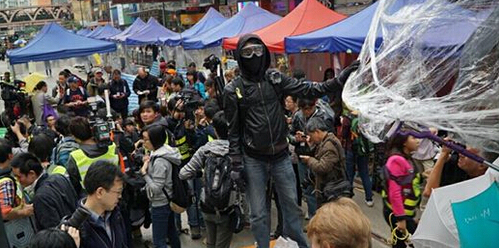而昨晨6時許,1男子突走入占領區,以一瓶水淋向姓羅占領人士(15歲),繼而拿出折疊刀,割破另一姓劉占領人士(21歲)的帳幕,即拔足逃去,兩事主先后報警,但事后表示不作追究。涉滋擾破壞男子年約30至40歲,束短發及穿深色衣服。