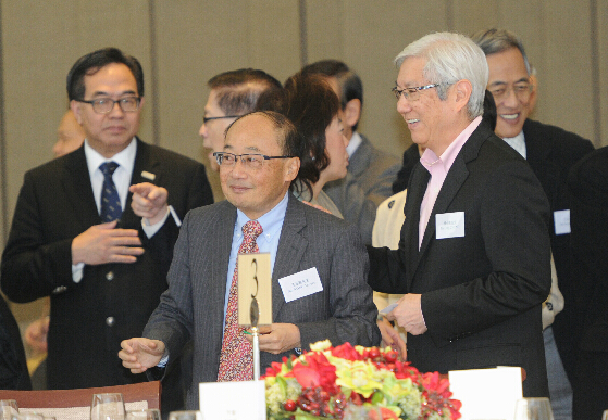 12月15日, 香港立法會議員在立法會綜合大樓宴會廳與前任議員午宴。當中前任議員王紹爾與程介南(右)出席宴會。香港中通社圖片