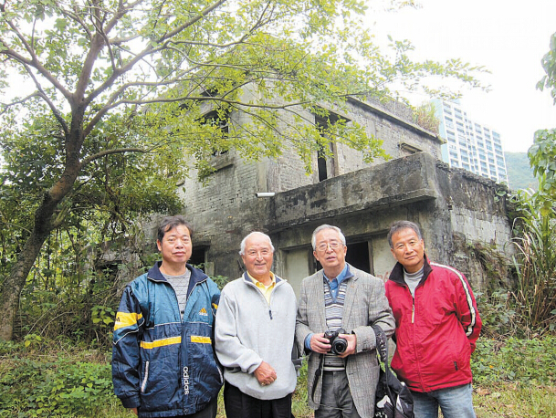 坐起:葉華清、榮永成、劉蜀永、葉長風在蓮麻坑礦場寫字樓遺址前合照