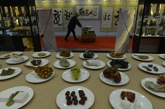 12月17日,在杭州舉行的首屆中國國際傳統手工藝技術博覽會上,壽山石版“滿漢全席”亮相。據主辦方介紹,這些石制“佳肴”是根據壽山石天然紋理略加雕刻制成,最大程度保留了壽山石的特色。
