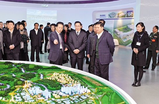 內江市領導周勇、陳朗、魏紅鋒及社會各界代表參觀了內江城市規劃展覽館。
