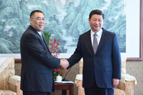 12月19日,国家主席习近平在澳门会见前来出席庆祝澳门回归祖国15周年活动的香港特别行政区行政长官梁振英。
