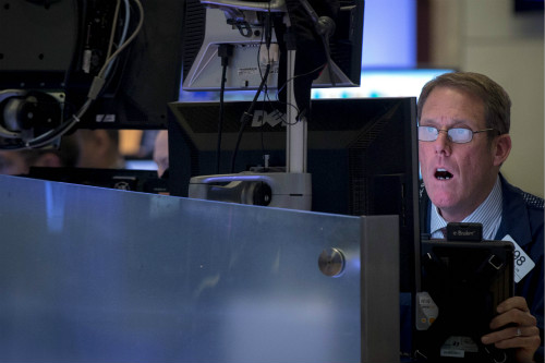 12月16日,在美国纽约证券交易所内,交易员查看股票行情。