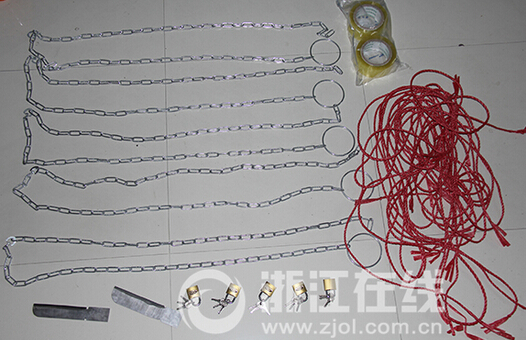 為了實施計劃,他們還采購了5根拴狗用的鐵鏈、5把掛鎖、10根編織繩、水果刀等作案工具。