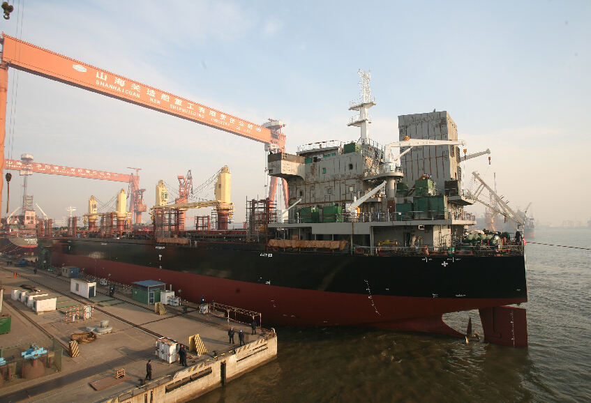 當日,由中船重工船舶設計研究中心有限公司設計、山海關船舶重工有限責任公司為泰國船東建造的載重3.85萬噸散貨船首制船順利下水。該船具有國內自主知識產權,屬新型節能環保船舶。船體總長182米,型寬30米,型深14.8米,結構吃水10.5米,適用于國際海域無限航區。據介紹,山船重工建造中的同類型船舶共計14艘。