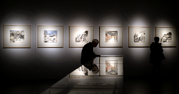 觀眾在第三屆杭州·中國畫雙年展上參觀。