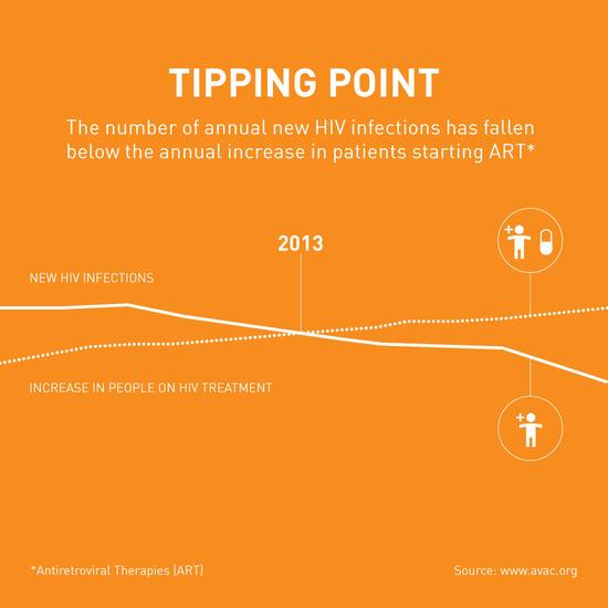 全世界都在為那些HIV感染者提供治療。但多年以來,我們卻始終落後,原因在於,儘管我們為很多人提供了治療,但還是比不上這種病毒的新增感染人數。但形勢似乎發生了逆轉。本月披露的最新資料顯示,2013年獲得治療的愛滋病人,多於新感染HIV的人數。這項資料為何重要?因為治療不僅能保住更多人的生命,還能大幅降低他們傳染他人的概率。正如流行病學家所說,我們可以逐步減少這種疾病的傳播。在徹底消滅愛滋病之前,我們仍然任重道遠,但這的確是一大突破。
