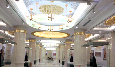 武曉怡告訴記者,改造后的呼和浩特博物館裝修風格主要以蒙元風格為主,具體在細節方面有很多。比如燈具的造型是玉環型的,頂棚上、地面上和其它一些地方都有蒙古族的紋飾,材質也有很大不同。