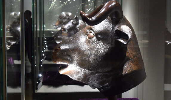 這是展出的圓明園十二生肖獸首銅像中的牛獸首。