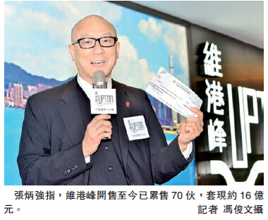 集團位於上環的「維港峰」昨日再錄一宗成交,單位為25樓C室,實用面積1053平方尺,成交價2602.05萬元,實用尺價約24711元。張炳強指出,「維港峰」開售數個星期以來,至今已累售70個單位,套現約16億元,對銷情感到滿意,可以「交到功課」,最快下周加推,強調項目尚有5%至10%的加價空間。