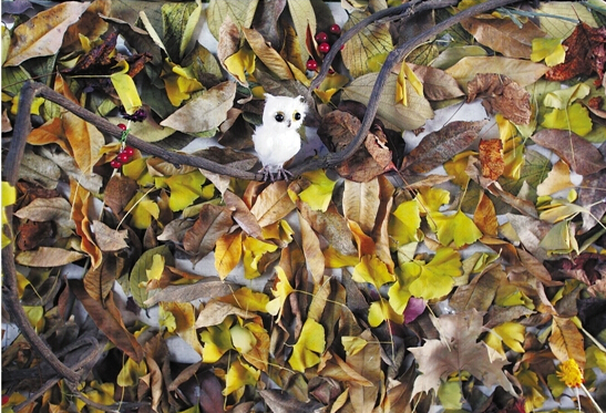 小小策展人用枯樹葉布的展,萌萌的貓頭鷹是不是很治愈呢?