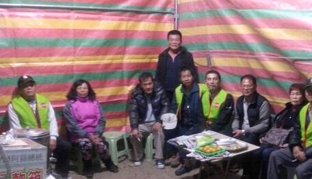 臺中監獄外徹夜守候扁的支持者,聚在帳旁內御寒。(中評社)