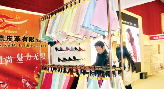 來自浙江溫州的林克舵是專做箱包生意的,此次特地從溫州過來看看惠東鞋業的情況。“展館展出的東西還是比較齊全的,各方面都有了,惠東做鞋還是可以的,有自己的優勢。”逛了一圈后,他有意和惠東縣信德皮革有限公司訂皮革,“這皮很軟,紋路又好,十分適合用來做箱包,待會兒我直接去他們公司看看,滿意了就下單。”