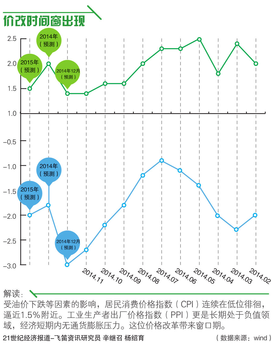 而 當下,價改遇到了最小阻力,是難得窗口期。一方面,由於消費者價格指數(CPI)和生產者價格指數(PPI)在低位運行,民間對價格改革後可能出現的價格 上漲具有較強消化力;另一方面,經濟進入新常態,經濟改革進入深水區,價格改革可成為經濟改革的抓手,從而激發經濟活力。