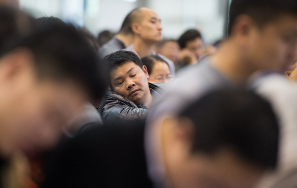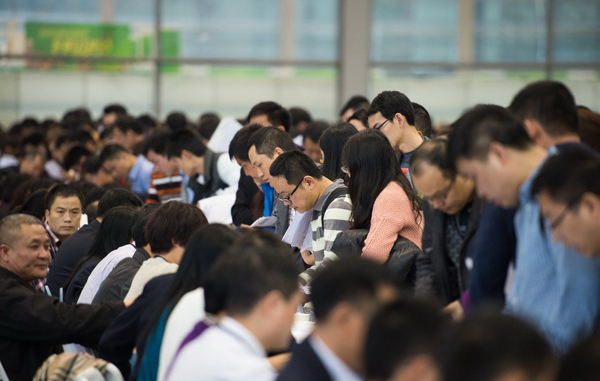 2015年1月5日,廣東深圳,深圳會展中心8號館,市民排長隊為未上牌的新購汽車辦理公證手續,證明自己買的汽車是在深圳限牌政策前購買的,通過公證的,深圳公證處會在1月26日前出具公證書。據悉,一天6000個預約號已全部辦理完畢,當日公證處將迎9600個預約號的挑戰。
