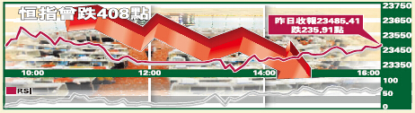 港股經過昨日跌市,本月已初呈先高后低形態,高位暫為周一之23999點,低位暫為昨日之23313點,由於686點波幅不能滿足月內所需,加上一個月之高低位是不會緊貼兩日內出現,故假如恒指暫無法上破23999點,在先高后低形態下,更低指數或仍在后頭。由於恒指已再跌穿50天線,故目前較具防守性支持據點已退守至250天線。大市可能於本月上旬先尋低位,反覆不明勢頭暫難擺脫。