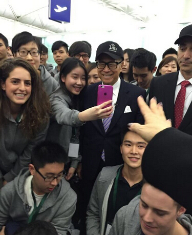 講完話,超人又走到學生中間,這幫年輕人情緒更加高漲,紛紛圍上去同超人講話拍照,見到學生咁熱情,超人也心情大好,幾乎來者不拒,搞到現場幾乎失控,過了成十分鐘先至可以影到大合照。