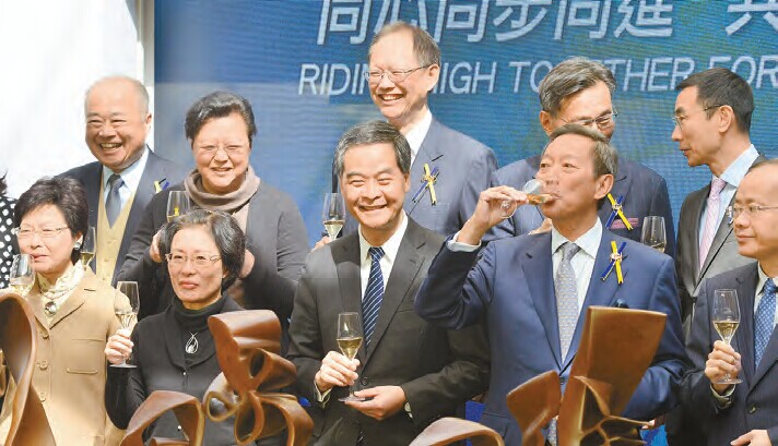 行政長官梁振英(CY)昨出席誌慶儀式時,讚揚馬會對香港的貢獻「馬力十足」。他稱,馬會去年繳交的博彩稅及其他稅款達195億元,支持政府建設一個關愛、共融的社會。他相信馬會未來將繼續在社會上擔當重要角色。