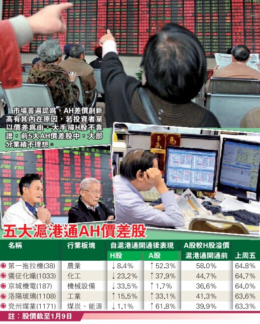 目前AH股價差最大的5隻滬港通股份,有兩家半年盈利倒退,兩家半年業績轉虧為盈,另一家仍處虧損狀態(詳見表)。追入這些價差股是否可取的投資方向?為什麼AH股價差沒有在滬港通下收窄?證券業界有不同見解。