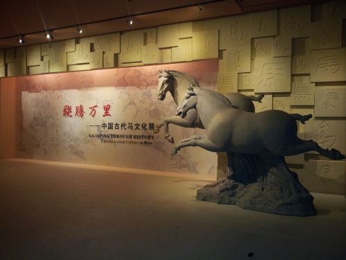 2014年1月26日,《驍騰萬里——中國古代馬文化展》在陝西歷史博物館拉開帷幕,展出了省內咸陽、延安、渭南以及省外的新疆維吾爾自治區博物館、甘肅省博物館等14家文博單位關於馬的文物精品150余件,向觀眾展示中國歷史悠久的馬文化,也是為廣大觀眾送上了一份新春賀禮和文化盛宴。展覽內容分五部分:“六畜之首,一馬當先——馬的馴養”、“玉鞍金羈,車水馬龍——馬與交通”、“金戈鐵馬,千乘萬騎——馬與戰爭”、“健兒快馬,戲舞翩躚——馬與娛樂”、“騏驥馳騁,天馬悠悠——馬與藝術”,從不同的角度展示中國古代馬文化的方方面面。展品中,有的“馬”只有指頭大,有的卻和真馬一樣大。這次展出的馬文物穿越時空,從商到秦漢再到唐,最後到清代,都有展品。馬的質地也包括青銅、木、陶等多種。土于延安市甘泉縣的商代青銅馬,陝西歷史博物館珍藏的秦鞍馬、唐三彩鞍馬,新疆維吾爾自治區博物館的唐彩繪泥鞍馬,青海省湟中縣博物館的北朝胡僧騎馬俑等很多文物都是第一次展出。