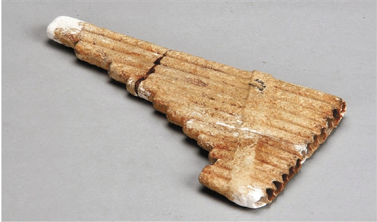 有一件超酷的春秋迷你樂器,乍一看,它像一把玩具手槍,仔細瞧,13根如香煙般細長的小管緊密排列,每一根石頭管子都是中空的,管壁厚度1毫米都不到。