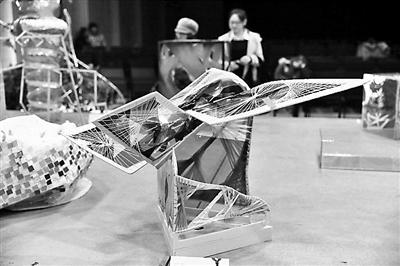 展覽總策展人覃京燕老師告訴北京青年報記者,這次展覽的主題是“聯繫情感”,在本學期的8周共32個學時裡,來自北科大的大二學生和來自臺灣以及國外的留學生、交換生,在工業設計系的老師和12位工業設計系大四學生指導下,完成了“漢字的演變、社會問題、一封情書、我的夢想、生與死、永恆”等一系列各類情感主題的三維藝術和設計作品的表達。(記者 董鑫 攝影 董強)