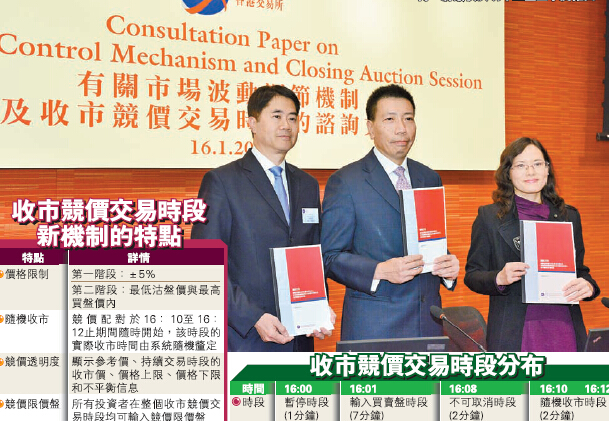 收市競價是國際證券市場上常用的交易機制,港交所曾於2008年5月引入該機制,惟因其存在不穩定性而於10個月後叫停。有見市場希望以收市價執行交易,故港交所現建議引入優化的收市競價交易時段模式。新模式主要包括將價格限制分為兩階段,第一階段中買賣盤須限價於午市結束時的價格之±5%,第二階段中買賣盤須進一步限價於當時的最高買盤價與最低沽盤價之間;以及隨機收市、加強市場數據的透明度、及收市競價交易時段內均容許輸入競價限價盤等措施。