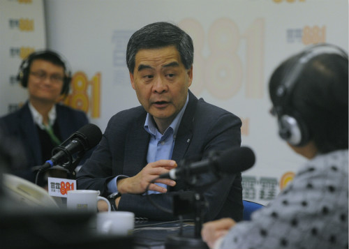1月17日上午,香港行政长官梁振英出席商业电台节目“政经星期六”。香港中通社图片