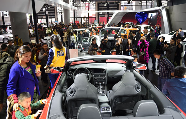 觀眾在第七屆中國-東盟(南寧)國際汽車展覽會上觀展(2014年12月7日攝)。新華社記者陸波岸 攝