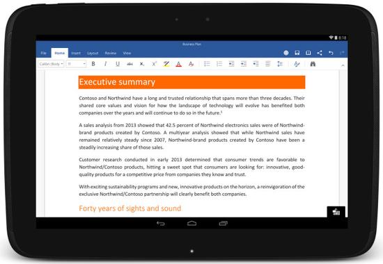 通過這些新應用,用戶將可在Android平板電腦上下載、瀏覽和編輯文件,並使用其他許多Office功能。