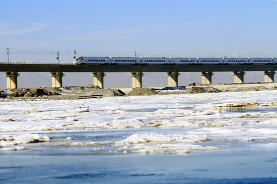 1月3日,一列高鐵列車賓士在甘肅河西走廊張掖大地。新華社發(陳禮 攝)