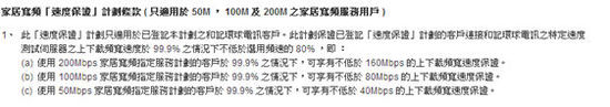 和HKBN類似,3也提供了速率保證計畫,選擇50M-200M寬頻服務的使用者可以保證享用到80%的承諾速率。而對於1000M寬頻服務,由於軟體硬體各方面的限制,實際的速率並不能做保證。