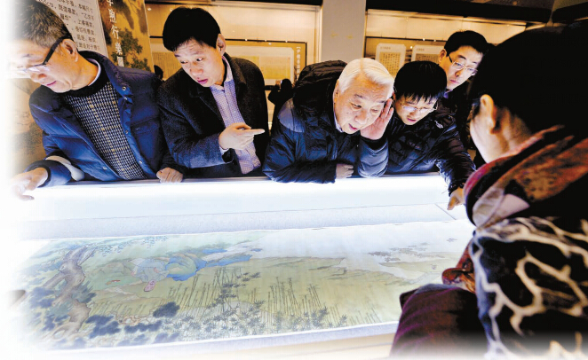 紅學專家們在展覽上參觀匡時拍賣會上拍得1863萬元的《李煦行樂圖》