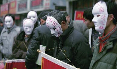 农民工戴面具上街讨薪