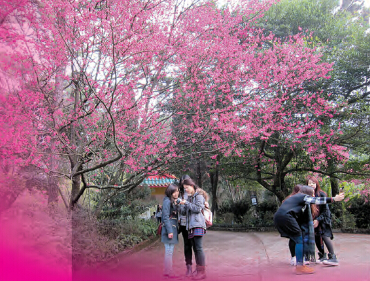 山櫻滿園吐艷 寒梅幽徑飄香